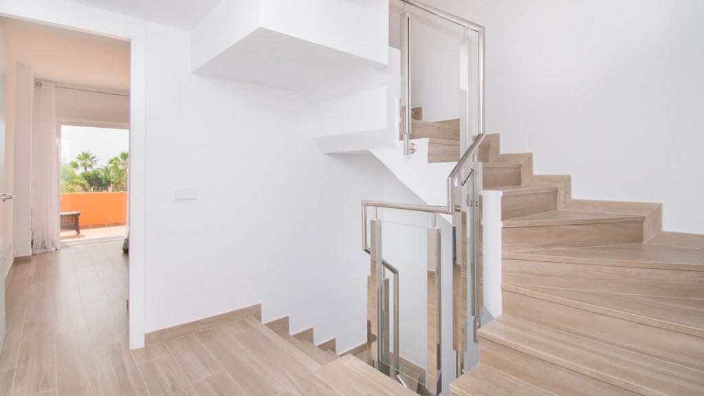 The complex has 3 and 4 bedroom townhouses. All Bellevue El Paraiso houses are developed over two floors and a solarium. The main floor consists of an open kitchen, a guest toilet, a living-dining room with access to a large covered terrace and a private garden. In the 4-bedroom typology, there is also an en-suite bedroom on this level.