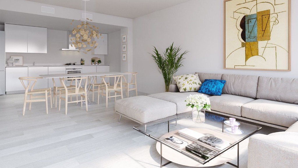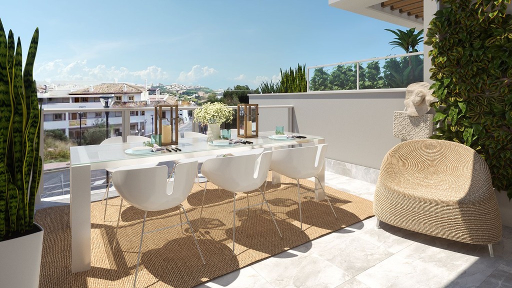 De woonkamers hebben directe toegang tot het terras en de penthouses bieden een prachtig uitzicht op de Middellandse Zee.