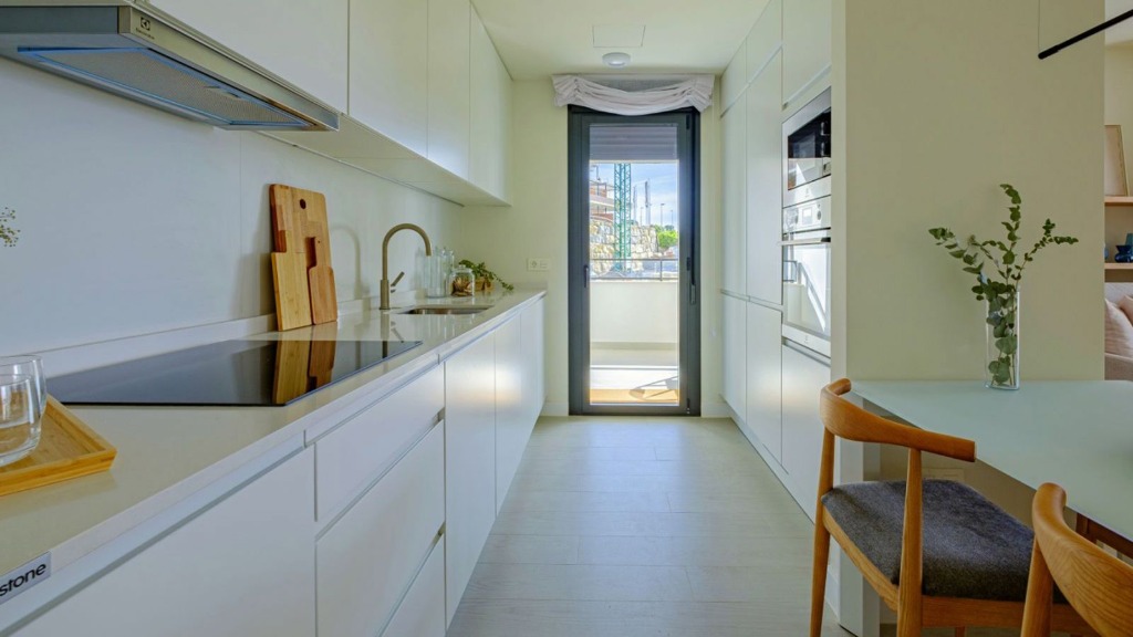Alle woningen hebben uitgeruste keukens, grote terrassen en hoogwaardige voorzieningen zoals warm water via aerothermie en pre-installatie voor het opladen van elektrische voertuigen. Appartementen op de begane grond met privétuin.