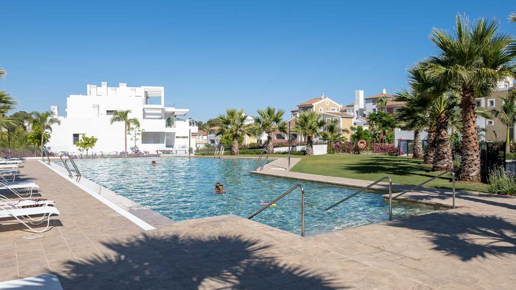 Dans la partie centrale de la parcelle, vous trouverez les espaces de loisirs et communs du développement, avec piscines, pour adultes et enfants, ainsi que des jardins qui se confondent avec l'environnement naturel.