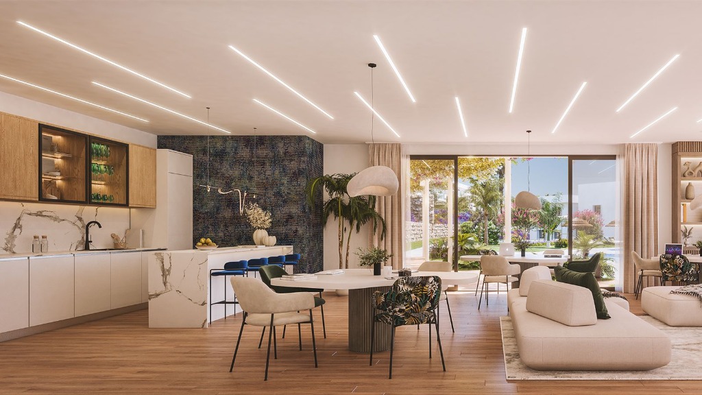 Each residence has spacious and sunny terraces or large gardens, designed to harmonize with the privileged climate of the coast, the Mediterranean sun and the impressive views of the golf course, the sea and the mountains.