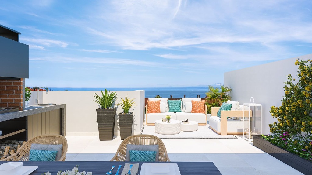 It comprises 16 townhouses of 3 bedrooms and is located in Bahía de Las Rocas urbanization, Manilva, on the Costa del Sol, Málaga. At GOLDEN VIEW 2 you will enjoy the best and most spectacular sea views, stretching to Gibraltar and the Moroccan coastline. All townhouses enjoy the best orientation south and southwest. Ideal surroundings to enjoy the authentic Mediterranean lifestyle.