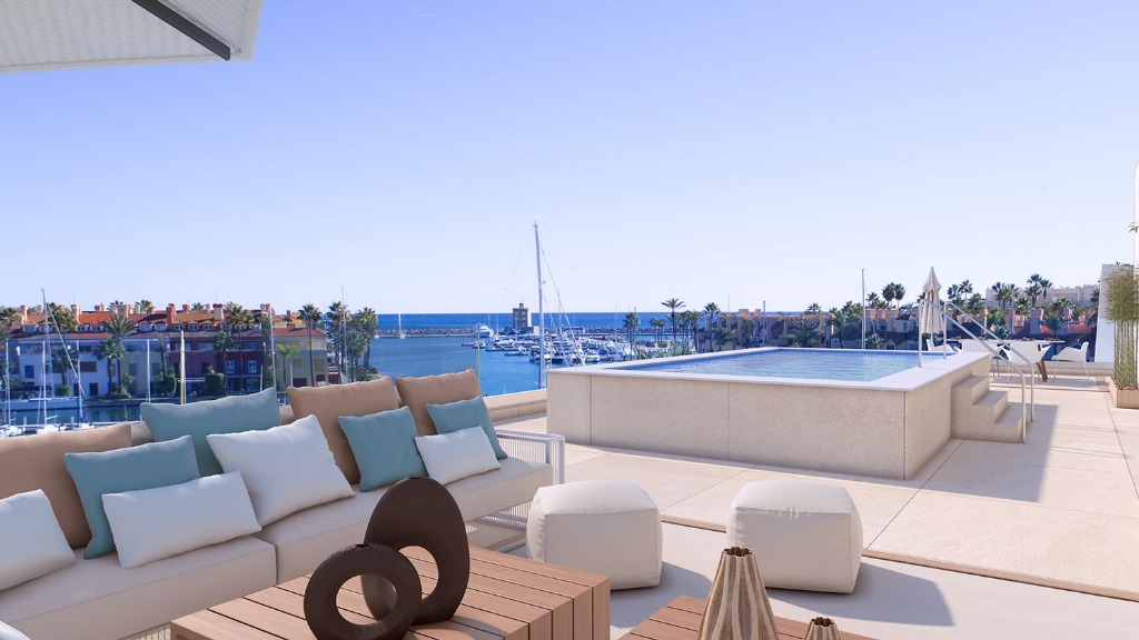 Penthouse with private solarium and apartments with terraces, all with spectacular views of La Marina de Sotogrande.