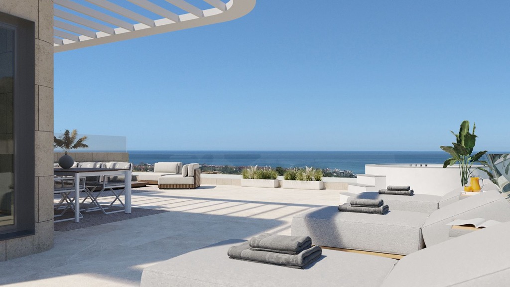 Libella Estepona 100% de vue sur la mer depuis tous les niveaux : Appartements, Penthouse 2, 3 chambres à partir de €665.000 | Contactez-nous aujourd'hui pour plus d'informations ou un rendez-vous.