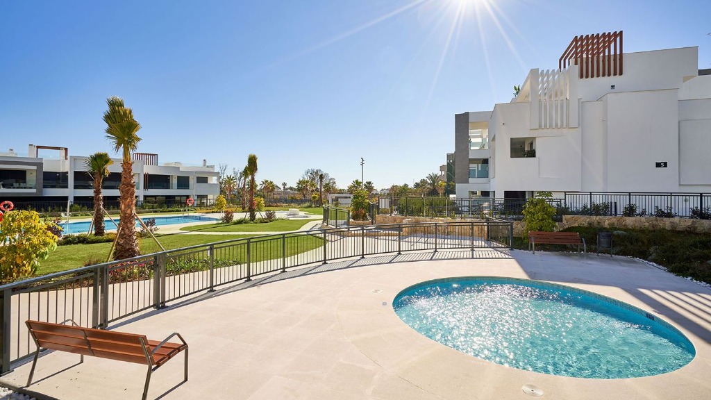 Avec son style lumineux et moderne en harmonie avec la nature grâce à la végétation abondante, la nouvelle conception architecturale fraîche du domaine et la distribution des espaces communs garantissent un moment vraiment agréable en bord de mer. Les bâtiments s'articulent autour d'une grande place centrale accessible par des passerelles intérieures, avec une piscine pour adultes, une piscine pour enfants, deux bains à remous chauffés avec éclairage intérieur, une piscine-plage de plus de 2 000 m2, et des WC sous la plateforme technologique, avec une pelouse naturelle, des arbres et des aménagements paysagers qui garantissent une esthétique irréprochable.