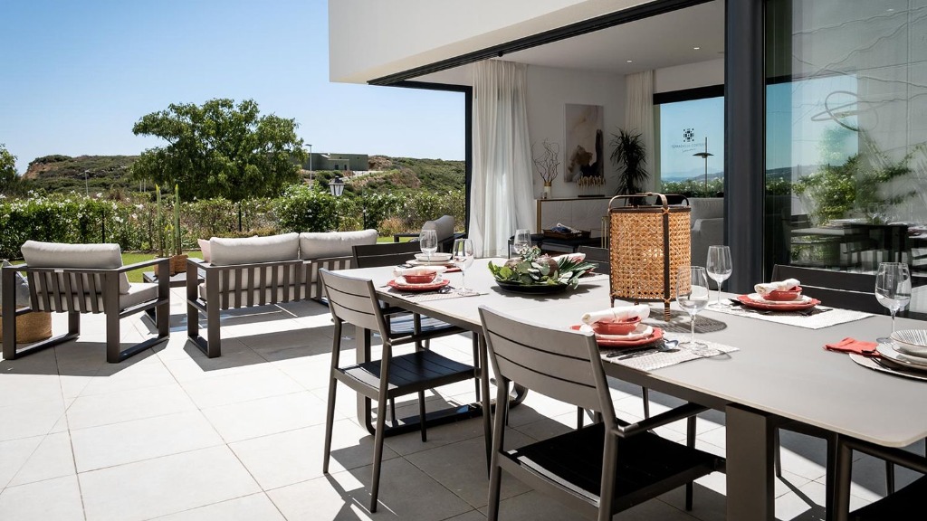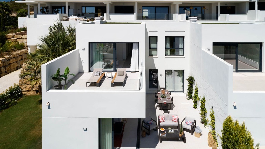 Avec les magnifiques conditions climatiques de la région, les terrasses sont une partie importante des villas, de grands espaces extérieurs pour amplifier le sentiment d'immensité que donnent les vues. Avec des terrasses de 65 m² et des jardins de 120 m² en moyenne.