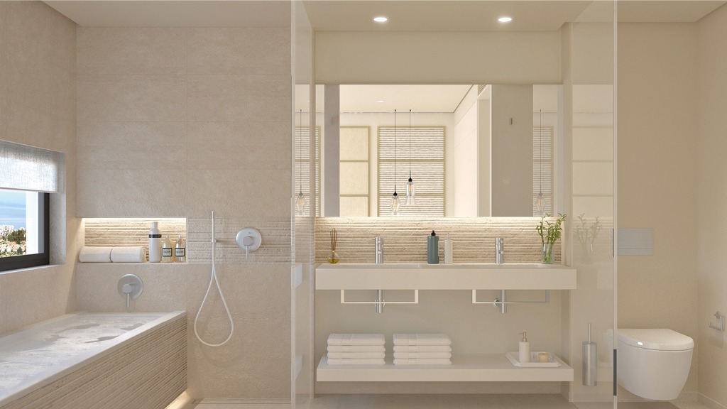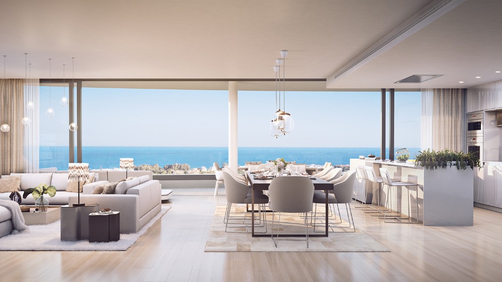 De appartementen profiteren van een brede nieuwe conceptplattegrond die zorgt voor optimaal zonlicht en ruimte. Het interieur is open, met stijlvolle, moderne keukens en badkamers. Grote panoramische ramen zorgen voor maximaal voordeel van de oriëntatie op het zuiden en zuidwesten.