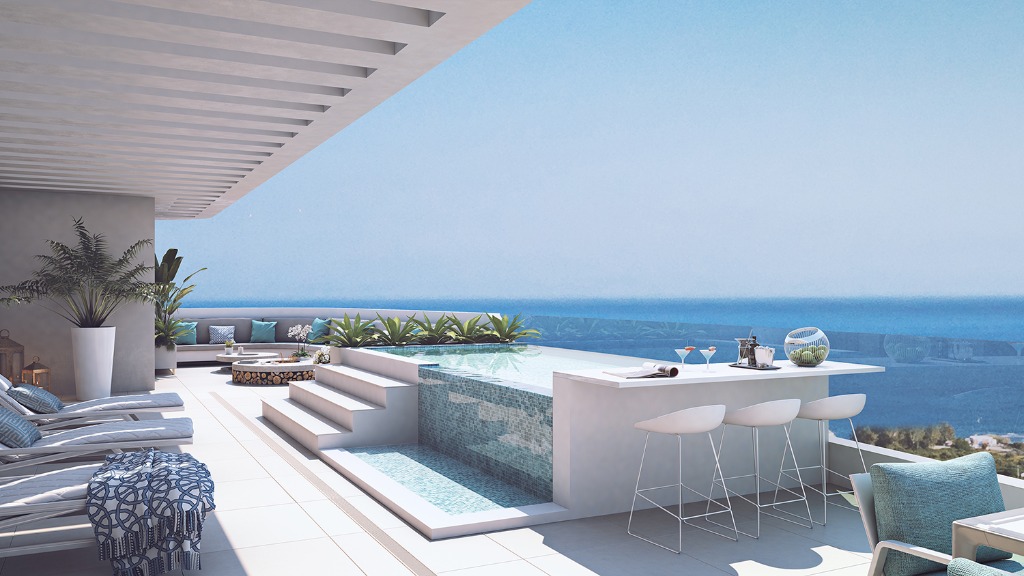 De terrassen zijn ruim, met glazen schuifdeuren die tot op de vloer zijn ingesprongen, waardoor de lifestyle-ruimtes in het interieur naadloos worden uitgebreid om echt te genieten van die lange, zonnige dagen waar de Costa del Sol zo beroemd om is.