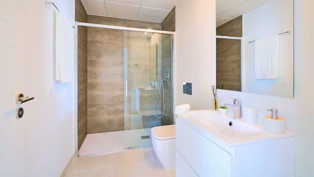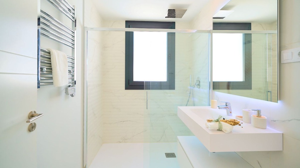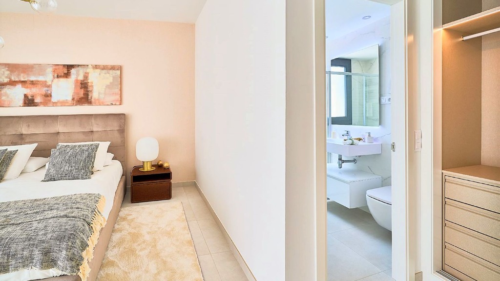 De hoofdslaapkamer heeft een en-suite badkamer. Alle badkamers in de woning zijn voorzien van vloerverwarming.