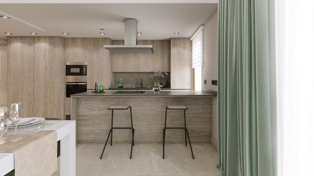 Almazara Hills biedt een scala aan appartement types en penthouses met 2 of 3 slaapkamers, en hebben allemaal een open keuken geïntegreerd in de woon / eetkamer.