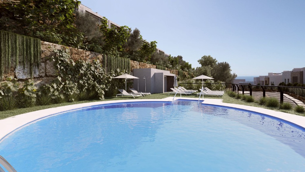 De ontwikkeling is zuid-zuidwest gericht met vrij uitzicht over Gibraltar, de kust van Marokko en de kustlijn van Marbella. Elke woning heeft 3 slaapkamers, en ze hebben grote terrassen, een solarium, en toegang tot een gemeenschappelijk zwembad met een aangelegde tuin met lokale planten, veel afkomstig uit het gebied zelf.
