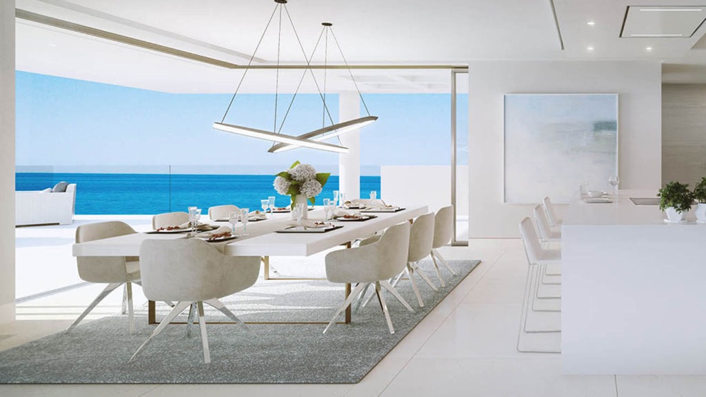 The modern design of the gardens still conserves a Mediterranean essence, most of these gardens are spread between the residential and the sea, where a new concept of swimming pool merges with the nature. Swimming in emare all year round on a front line beach position, becomes possible thanks to its large dimension Outdoor Heated pool, which integrates a “Bajo Shelf”area (Solarium) and it is run by salt chlorination system. The infinity side of the pool gives the final touch, allowing an amazing visual integration of both waters, the pool one with the sea one.