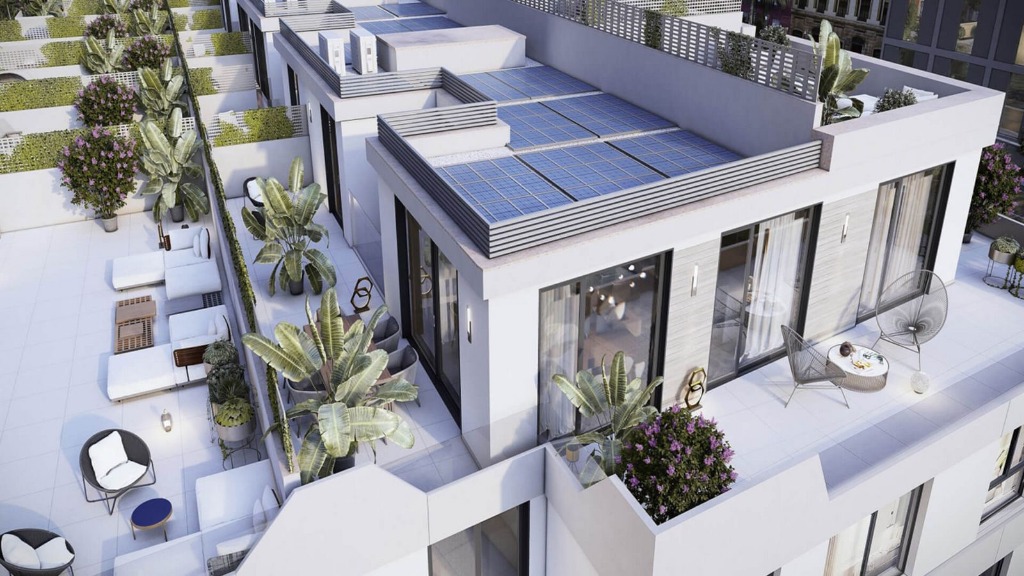 Het gebouw is zuidoost georiënteerd, waardoor de zonuren optimaal worden benut en er een betere energie-efficiëntie wordt bereikt. Perfecte combinatie tussen kwaliteit en avant-gardistisch design.