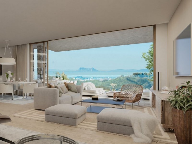 Real de La Quinta - Olivos in Benahavis, each 2 or 3 bedroom apartment has incredible views of the coast to Gibraltar and on a clear day as far as Northern Africa. From the peace and privacy of your home you can see cultures, continents and the glittering Costa del Sol.