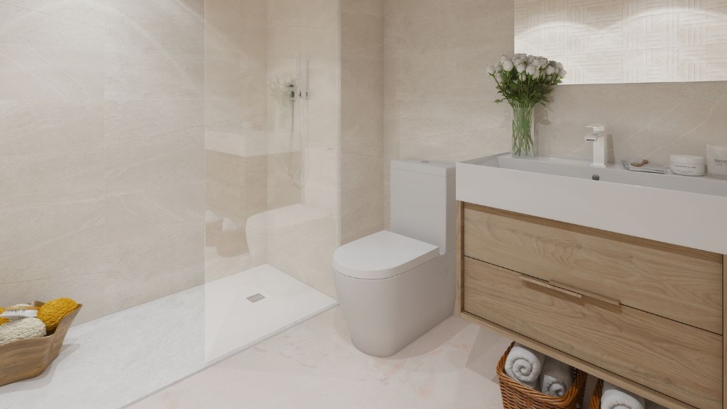 Alle appartementen hebben dubbele beglazing en veiligheidsdeuren. In alle woningen zijn dezelfde keramische tegels van Saloni gebruikt, in groot formaat van 60×60 cm.