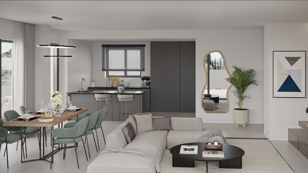 It boasts several swimming pools in the communal areas, a coworking area, a gym and a social club with a bar, in addition to extensive gardens with spaces for living life to the fullest all year round.