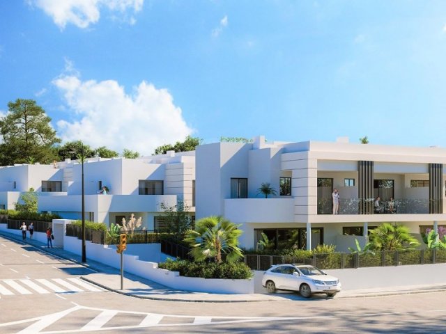Dernière unité - toute nouvelle maison de ville de 3 chambres est située sur l'exclusif Golden Mile - Puente Romano dans une position idéale et face à l'ouest avec jardin privé et garage 2 voitures.