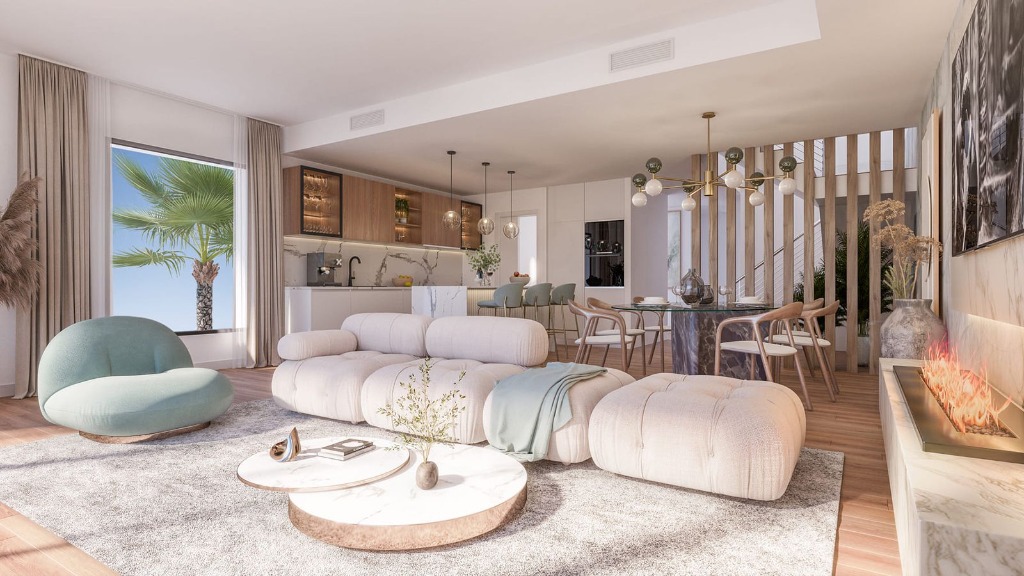 L'intérieur de ces nouveaux logements offre une conception fluide et ouverte qui relie de manière transparente les espaces intérieurs et extérieurs. Les cuisines sont équipées d'appareils électroménagers de marque et offrent un espace à la fois fonctionnel et élégant.